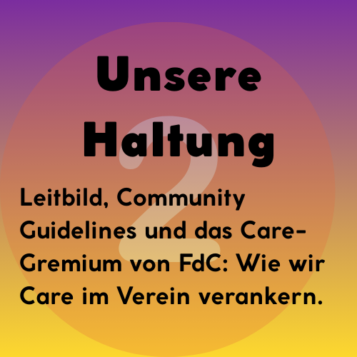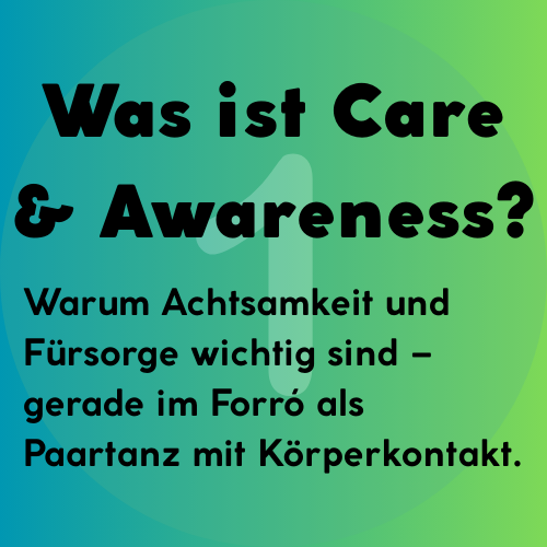 Forró lebt von Nähe, Freude und Respekt. Damit sich alle beim Tanzen und Mitmachen wohlfühlen, haben wir als FdC Care & Awareness fest in unserer Vereinsarbeit verankert. Durch einen Klick auf die jeweilige Kachel findest du unsere Prinzipien, Ansprechpersonen und Infos, wie du uns erreichen kannst.