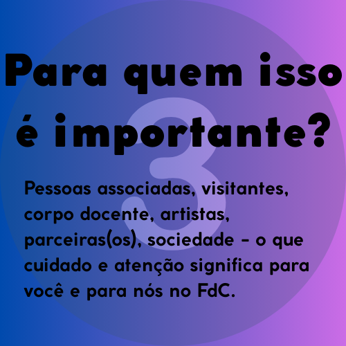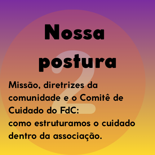 O forró vive de proximidade, alegria e respeito. Para que todas as pessoas se sintam bem ao dançar e participar, o FdC incorporou os princípios ‘’cuidado e atenção’’ como parte fundamental do nosso trabalho. Ao clicar em cada bloco você encontra nossos princípios, pessoas de contato e informações sobre como falar com a gente.