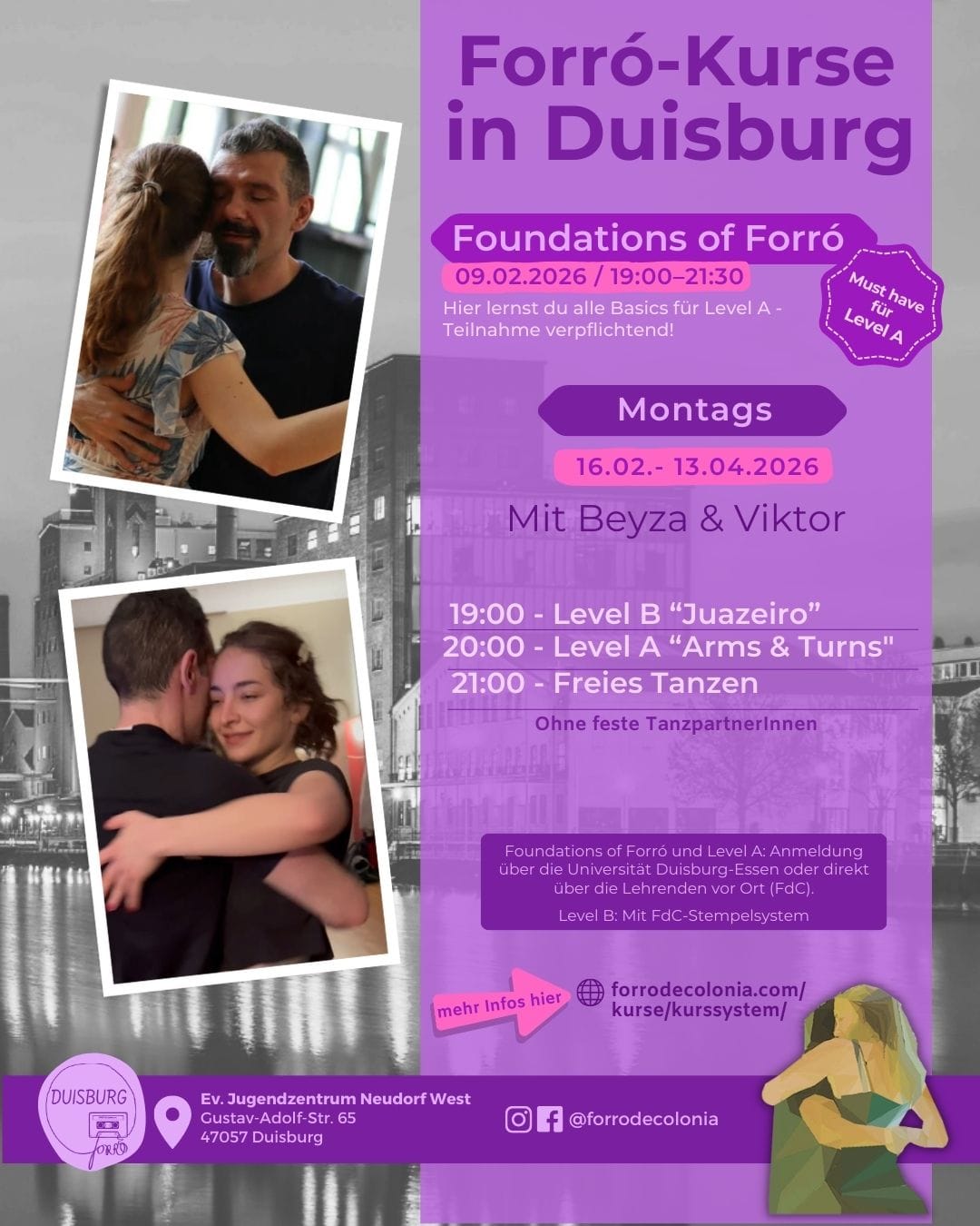 In Duisburg finden die Kurse mit Carolina, Beyza and Viktor Montags statt.